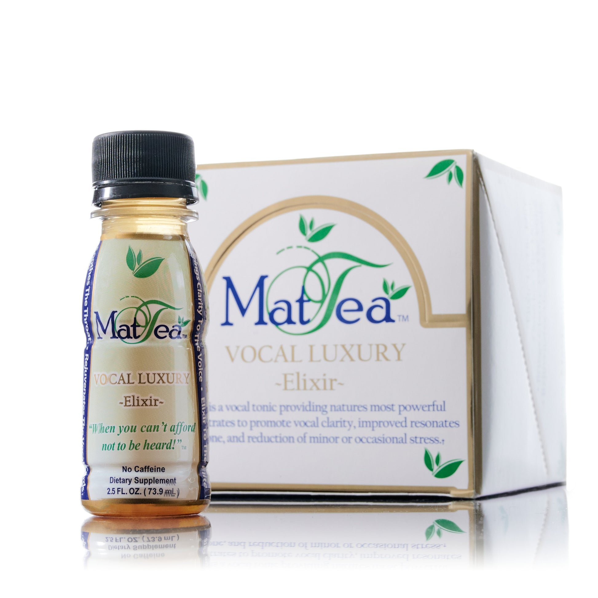 Vocal Luxury is a natural THROAT TONIC. This caffeine-free herbal elixir provides a formulated blend of natural ingredients to soothe the throat and vocal cords.